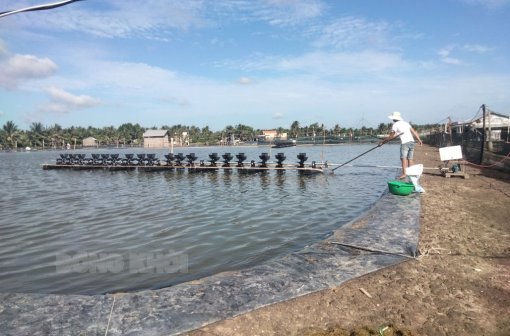 Nuôi tôm công nghiệp trên địa bàn huyện Bình Đại. Ảnh: T. Lập