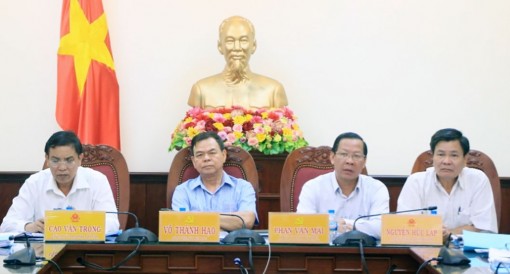 Điểm cầu tỉnh, Bí thư Tỉnh ủy Võ Thành Hạo, Phó bí thư Thường trực Tỉnh ủy Phan Văn Mãi, Chủ tịch UBND tỉnh Cao Văn Trọng cùng lãnh đạo các sở, ngành tỉnh dự.