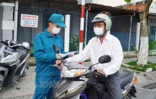 Người dân tuân thủ trình “giấy thông hành” tại chốt kiểm soát Phường 5, TP. Bến Tre.