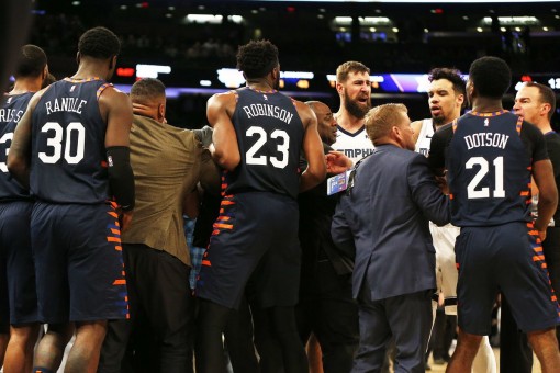 Hai cầu thủ bao gồm Elfrid Payton (New York Knicks) và Jae Crowder (Memphis Grizzlies) đã bị truất quyền thi đấu khi màn so tài giữa hai đội bóng tại Madison Square Garden chỉ còn chưa đầy 1 phút.