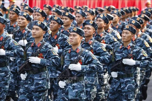 Khối lực lượng Tác chiến không gian mạng diễu qua Lễ đài tại Lễ diễu binh, diễu hành kỷ niệm 50 năm Ngày Giải phóng miền Nam, thống nhất đất nước. Ảnh: TTXVN