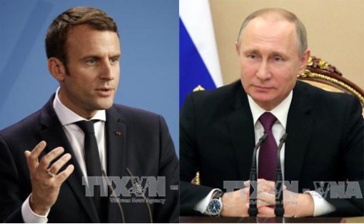 Tổng thống Emmanuel Macron và Tổng thống Nga Vladimir Putin (phải). Ảnh: EPA/TTXVN