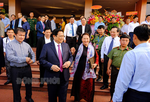 Thủ tướng Chính phủ Phạm Minh Chính và nguyên Chủ tịch Quốc hội Nguyễn Thị Kim Ngân cùng các đại biểu dự lễ kỷ niệm. Ảnh: Trung Hiếu