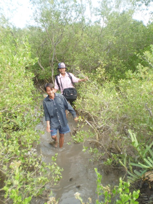 | Lội rừng ra cồn Đâm. Ảnh: C.Tr |