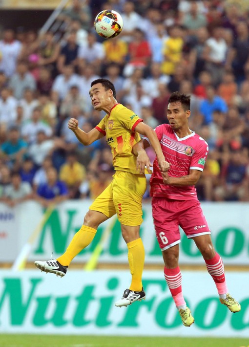 Một pha bóng trong trận Nam Định thắng Sài Gòn 1-0. Nguồn: TTO