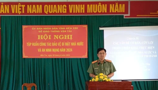 BDK.VN - Ngày 30-8-2024, Sở Giao thông vận tải tổ chức hội nghị tập huấn “Công tác bảo vệ bí mật nhà nước và an ninh mạng năm 2024”. Đại tá Trương Tấn Tùng - Trưởng phòng An ninh chính trị nội bộ và Thượng tá Nguyễn Văn Dũng - Phó trưởng phòng An ninh mạng và phòng chống tội phạm sử dụng công nghệ cao làm báo cáo viên tại hội nghị.