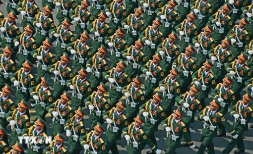 Màn diễu binh ấn tượng của các lực lượng quân đội, công an trên đường phố. (Ảnh: Mạnh Linh/TTXVN)