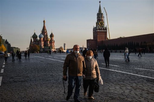 Người dân đeo khẩu trang phòng dịch COVD-19 tại Moskva, Nga ngày 28-10-2020. Ảnh: THX/TTXVN