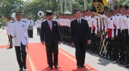 Chiều 27/11, Chủ tịch nước Trương Tấn Sang và đoàn cấp cao nước ta đã tới thủ đô Bandar Seri Begawan bắt đầu chuyến thăm cấp Nhà nước tới Brunei Darussalam theo lời mời của Quốc vương Brunei Hassanal Bolkiah Mu'izzaddin Waddaulah. Lễ đón chính thức Chủ tịch nước Trương Tấn Sang được tổ chức trọng thể tại Cung điện Istanal- Nurul-Iman.