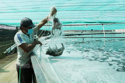Tôm thẻ chân trắng nuôi theo quy trình công nghệ cao đáp ứng yêu cầu chất lượng tiêu chuẩn Việt Nam. Ảnh: Thành Lập