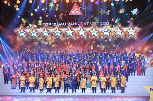 TOP 10 Sao Vàng đất Việt 2021 gồm các thương hiệu: FPT, Viettel Post, Sacombank, Vinaconex, Việt Tiến, Minh Phú Seafood, ATAD, Thiên Long, Hưng Thịnh, KSB - Bimico. TOP 10 Sao Vàng đất Việt 2021 đạt doanh thu hơn 554.000 ngàn tỷ đồng, nộp ngân sách hơn 9.000 tỷ đồng và tạo việc làm cho trên 107.000 lao động.
